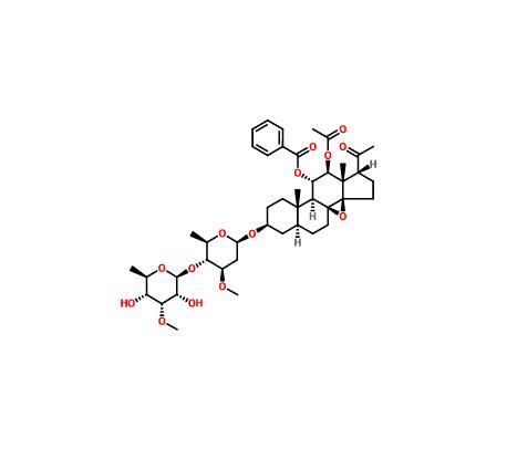 【英文別稱】 Pregnan-20-one, 12-(acetyloxy)-11-(benzoyloxy)-3-[[2,6-dideoxy-4-O-(6-deoxy-3-O-methyl-β-D-allopyranosyl)-3-O-methyl-β-D-arabino-hexopyranosyl]oxy]-8,14-epoxy-, (3β,5α,11α,12β,14β,17α)-