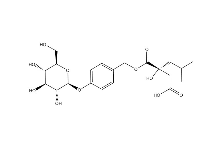 【英文別稱】 β-D-Glucopyranoside, 4-[[[(2R)-2-(carboxymethyl)-2-hydroxy-4-methyl-1-oxopentyl]oxy]methyl]phenyl