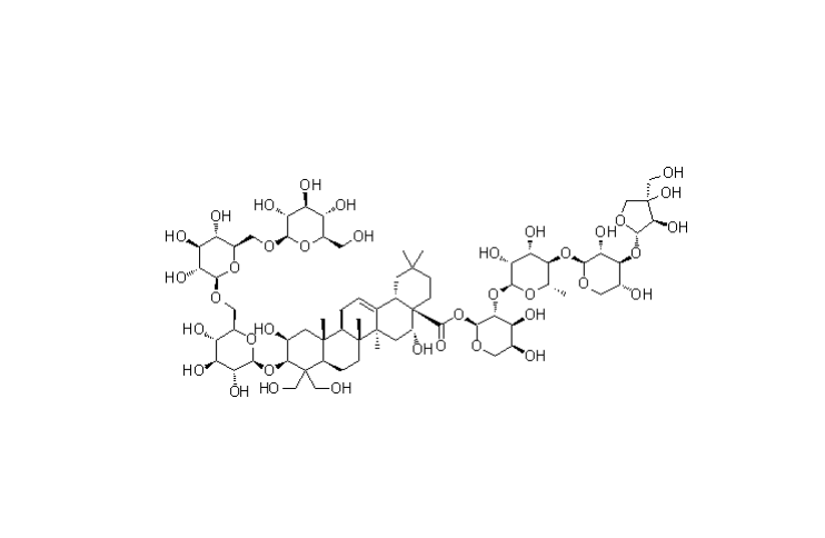 【英文別稱】 Olean-12-en-28-oicacid,3-[(O-β-D-glucopyranosyl-(1→6)-O-β-D-glucopyranosyl-(1→6)-β-D-glucopyranosyl)oxy]-2,16,23,24-tetrahydroxy-Chemicalbook,O-D-apio-β-D-furanosyl-(1→3)-O-β-D-xylopyranosyl-(1→4)-O-6-deoxy-α-L-mannopyranosyl-(1→2)-α-L-arabinopyranosylester,(2β,3β,16α)-
