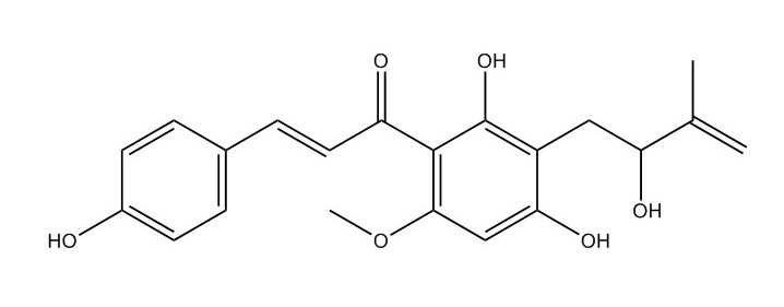【英文別稱】 (2E)-1-[2,4-Dihydroxy-3-(2-hydroxy-3-methyl-3-buten-1-yl)-6-metho xyphenyl]-3-(4-hydroxyphenyl)-2-propen-1-one